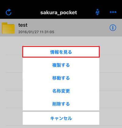 5さくらぽけっとの利用フォルダをタップしメニューを表示させます。