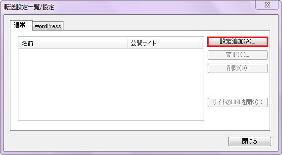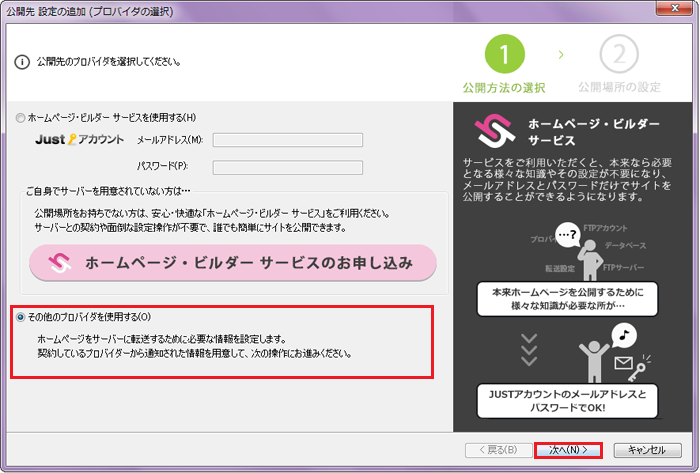 4「 公開先 設定の追加(プロバイダの選択) 」の画面が表示されます。