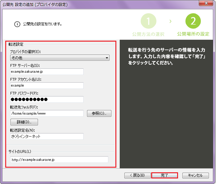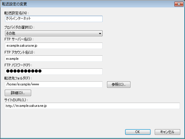 - FTPサーバー名(S):example.sakura.ne.jp(初期ドメイン)