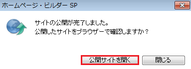 確認をする場合は『 公開サイトを開く 』をクリックします。