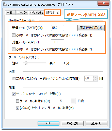 2「詳細設定」のタブをクリックし、サーバーのポート番号を確認します。