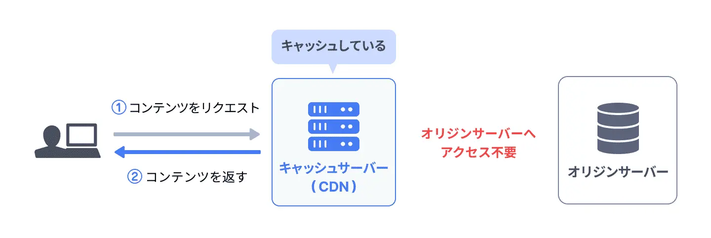 CDNを利用すると、サーバーやネットワークの負荷を大幅に軽減できます。これは、キャッシュサーバーがオリジンサーバーの肩代わりをしてコンテンツを配信することにより、オリジンサーバーへのアクセスが低減されるためです。