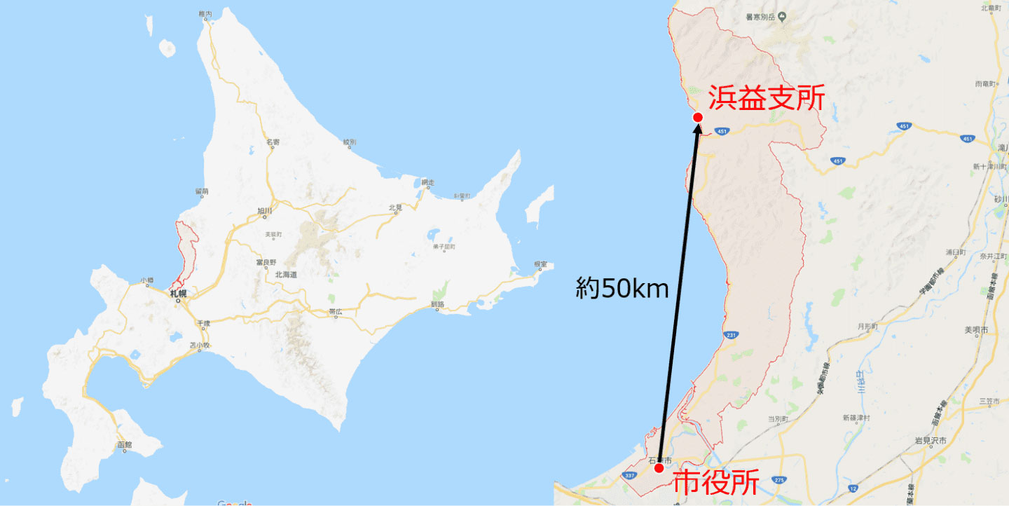 ここからは、実際のデータに基づく推察を交えてお話します。LPWAの水位センサは、下図の通り石狩市北部に位置する浜益区において運用されており、6つの川にそれぞれ水位計測器とゲートウェイ装置が1台ずつ稼働しています。