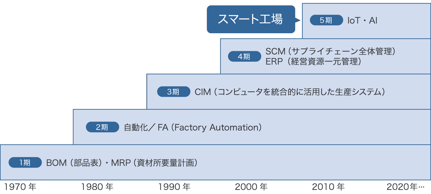 ドイツが産んだ「インダストリー4.0」は2011年から始まった製造業の革新です。日本でも取り組まれており、IoTによるビッグデータの収集と、それを学習したAIによる分析と制御を通じて、自ら考えるスマートファクトリーの実現が第4次産業革命と呼ばれているものです。