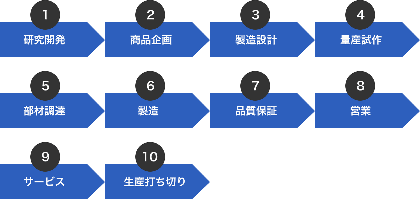 | ERP | Enterprise Resource Planning | 製品の主要な原価要素が管理されており、PLMの中の大部分の収益を管理する重要なシステムです。 |