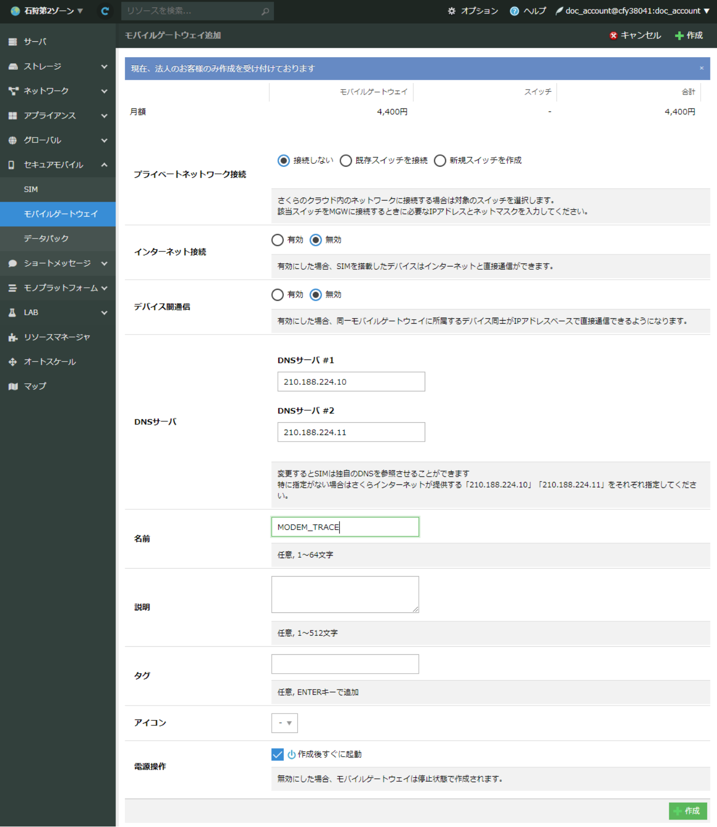 さくらのセキュアモバイルコネクトを利用するためには、お客様ごとのプライベートなモバイル網通信の終端となる「モバイルゲートウェイ」の作成が必要です。