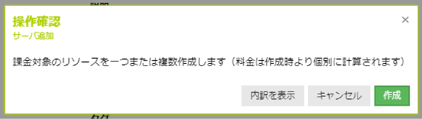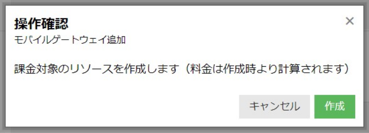 ③有償のリソース作成が行われるため、確認モーダルが表示されます。