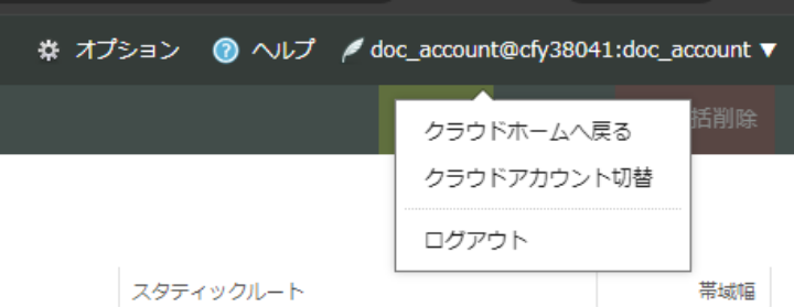 クラウドホームへは、さくらのクラウドのコントロールパネル右上のユーザ/アカウントが表示されている所から移動できます。