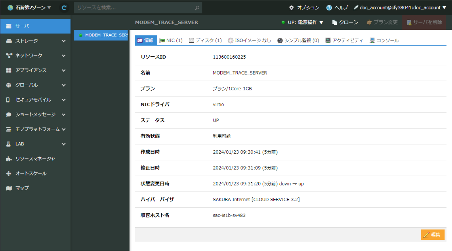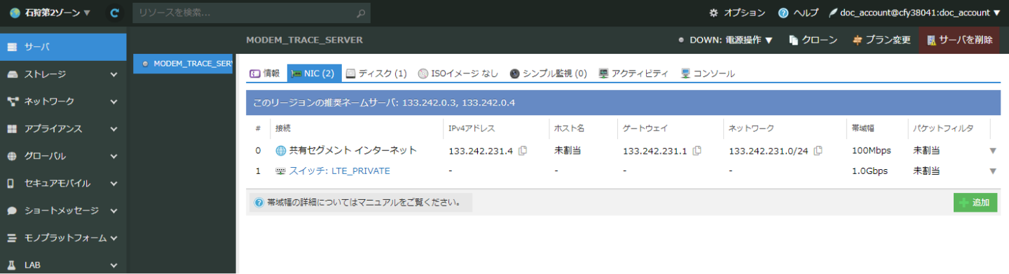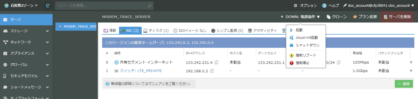 以上がモデムトレースを試すためのセキュアモバイルコネクト評価用クラウド環境構築例となります。評価/確認終了後に使用しない時には、安全の為一旦サーバをシャットダウンしておくことをお勧めします。