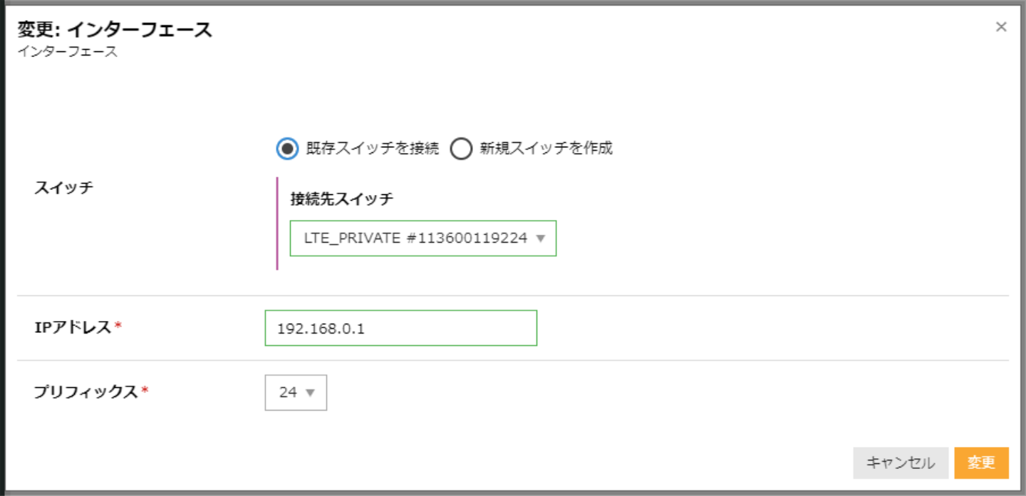 モバイルゲートウェイとサーバの間を、プライベートネットワークで接続するためのスイッチを作成します。