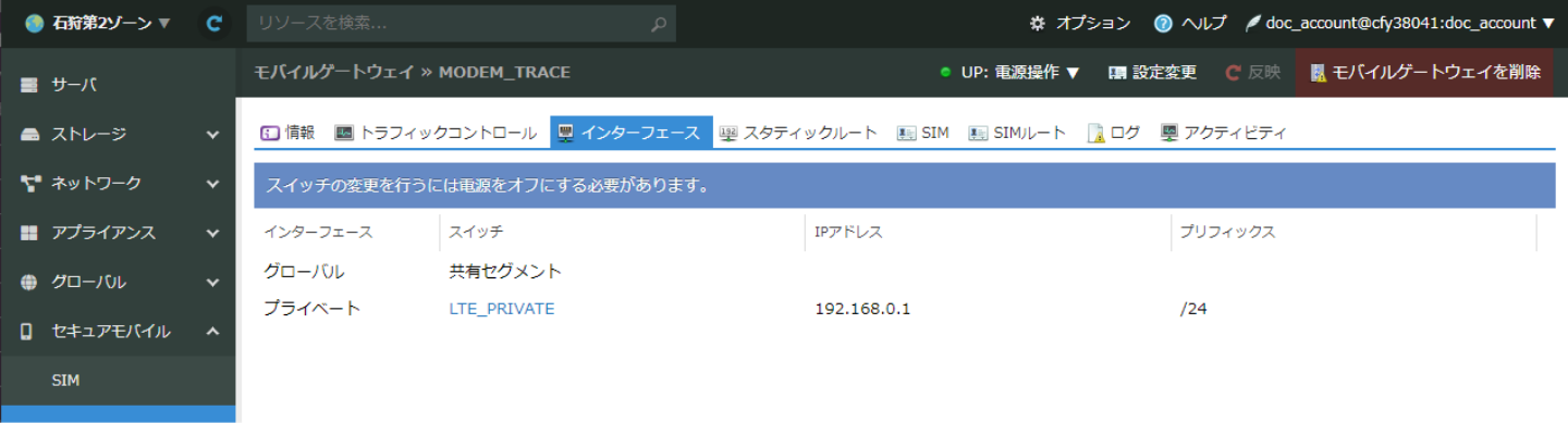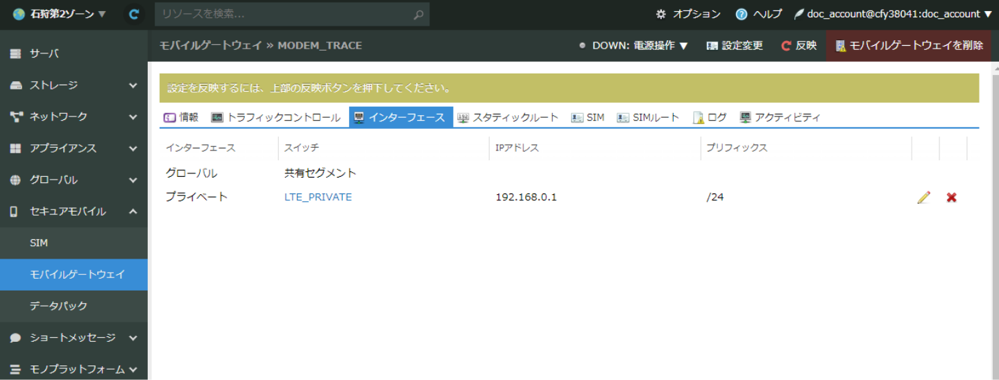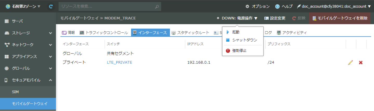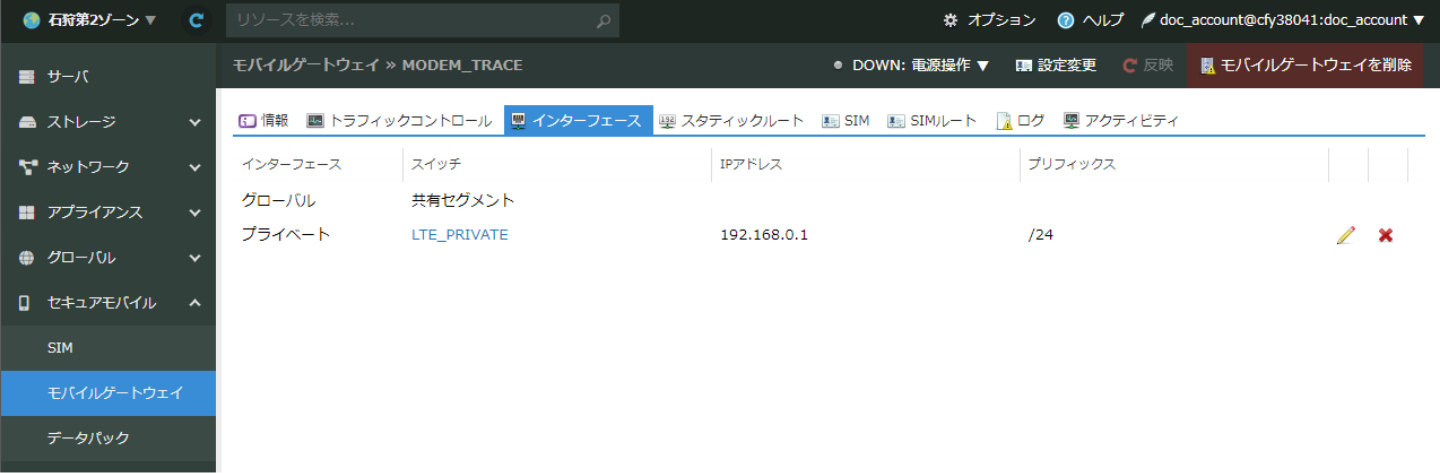 ens4に192.168.0.2のIPアドレスが割り当てられ、SIMのIPアドレス範囲172.16.0.0/16への経路がモバイルゲートウェイのプライベートネットワーク用インターフェイスのIPアドレス192.168.0.1になっていることを確認してください。