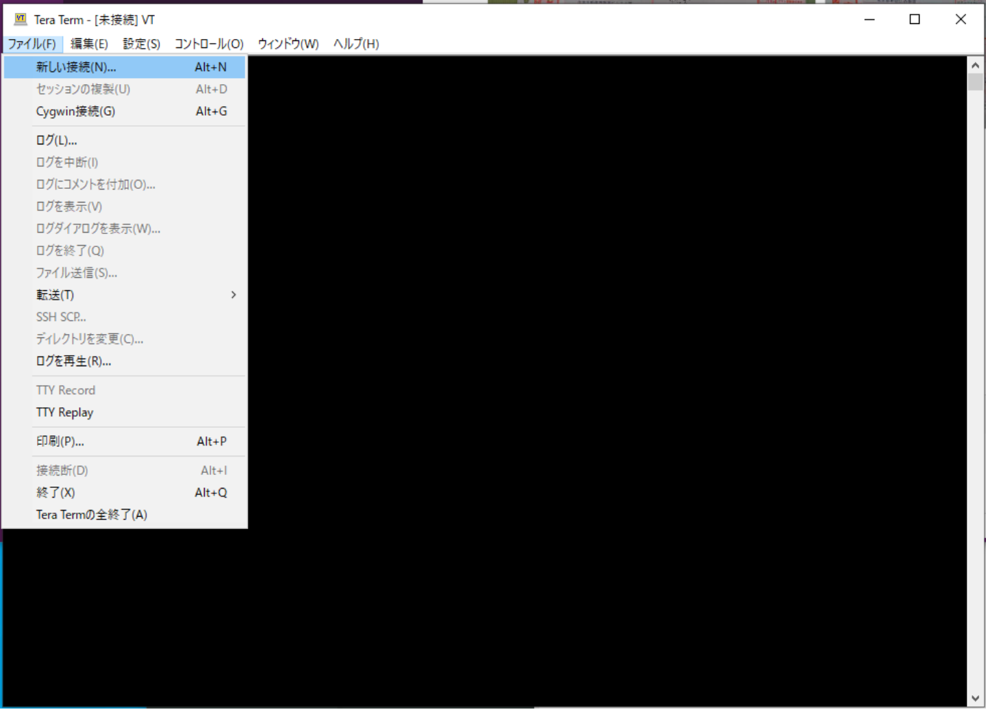②ここからはTera Termで作業していきます。Tera Termを立ち上げ、新しい接続を選択します。