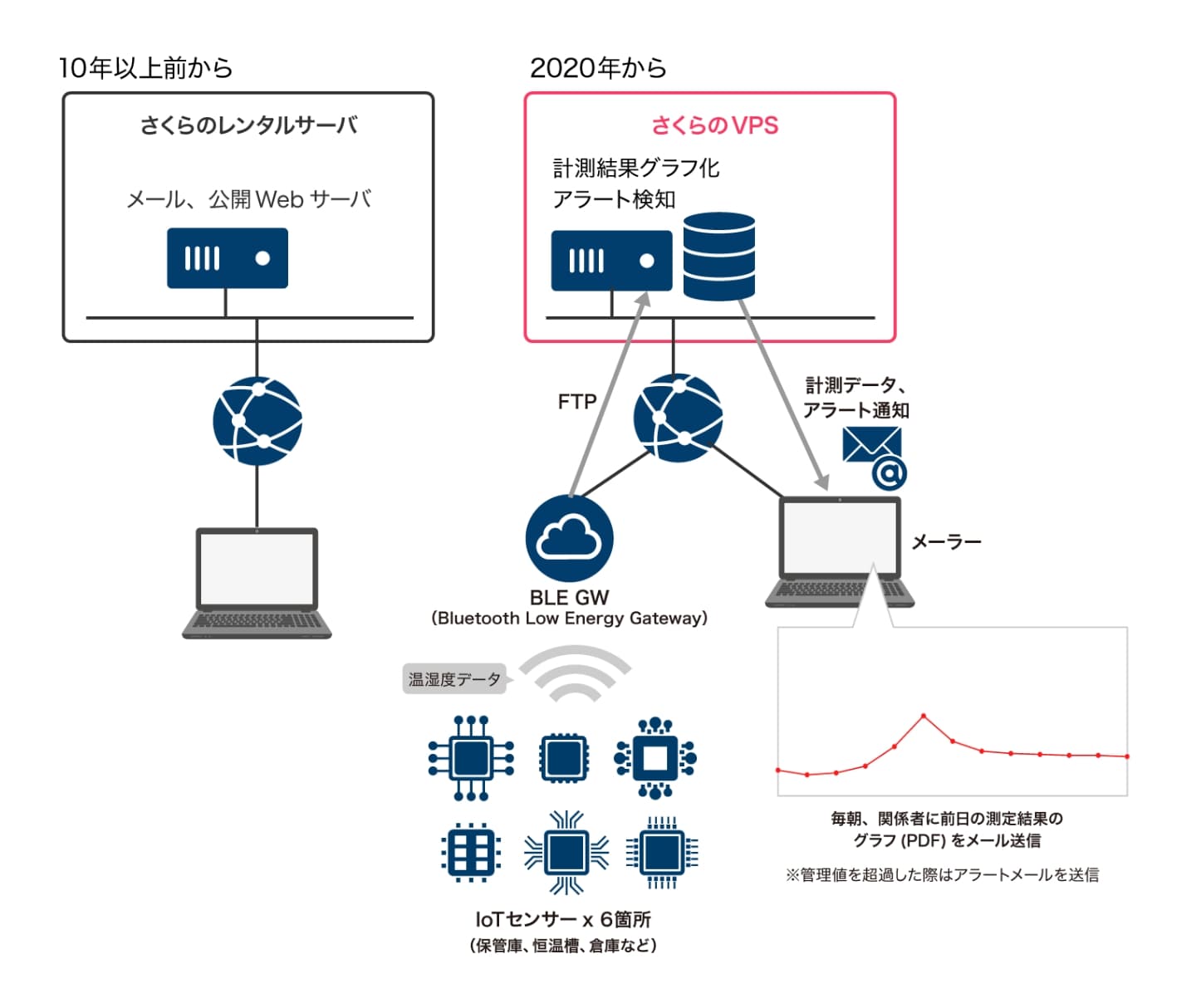 社内実績として、さくらのVPSを活用した工場内の温湿度計測システムを開発し、現在も継続運用中。