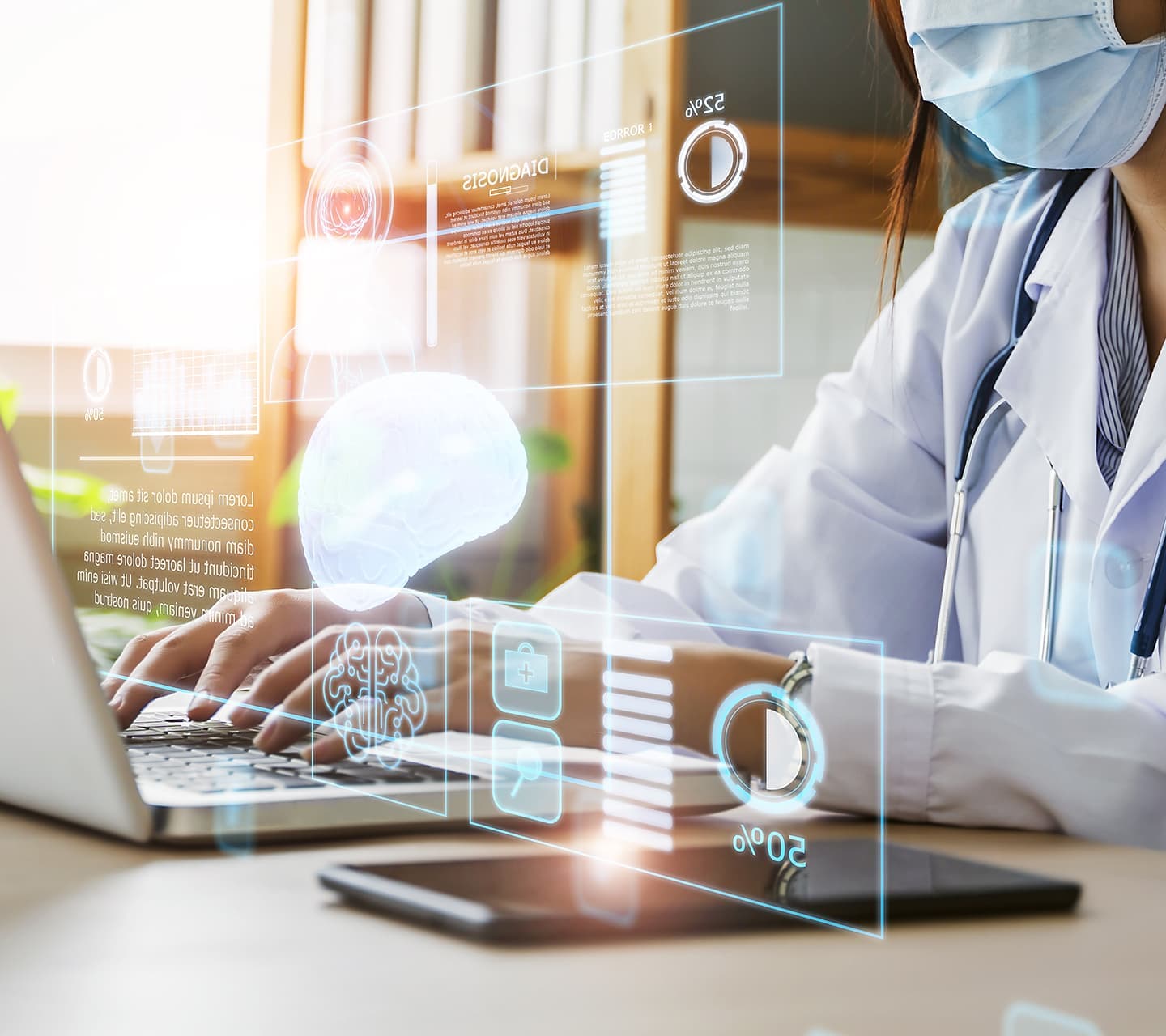 IoT、AI、ビッグデータ、ロボティクスは代表的な技術として医療分野でも進化するものです。時期を同じくしてVR、AR、MR、や次世代の高速携帯通信規格の5G、ブロックチェーン、BMI、などの新たな技術革新も進んでいます。5Gとは、高速大容量、低遅延、多数接続を実現した通信技術です。高画質な動画や映像のリアルタイム配信、大容量データのダウンロード、自動運転、遠隔医療、IoTなど様々な分野で活用できる重要な技術として、さらなる技術革新をもたらすと考えられています。以下に代表的な技術と説明をまとめました。