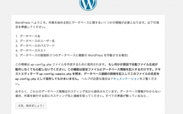 このあと、WordPressのサイト名や管理ユーザーの設定などを行って、WordPressのインストールを完了させてください。