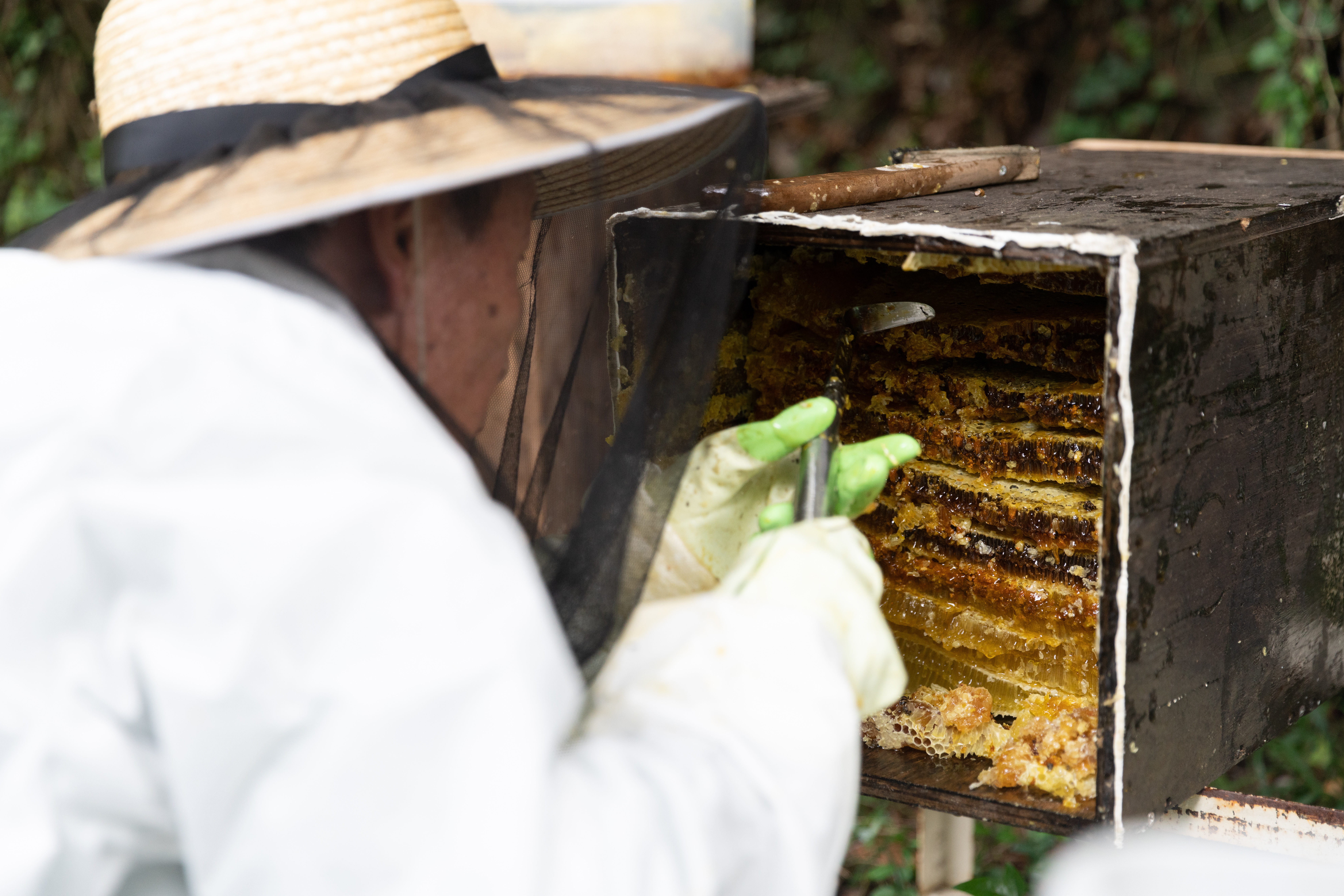 近所の人から巣箱をもらって始めたニホンミツバチの養蜂