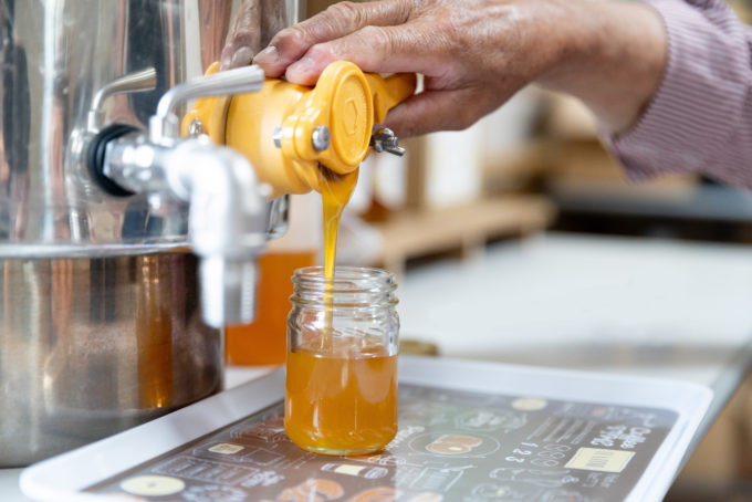 今回使ったニホンミツバチは、野生にいる日本の在来種。蜜は刺激がなく、サラサラしてるのに、味が濃いです。だから固定ファンがいます。