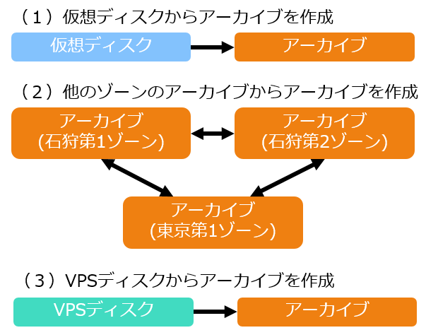 「さくらのクラウド」では、仮想ディスクをイメージ化したものを「アーカイブ」と呼んでいます。