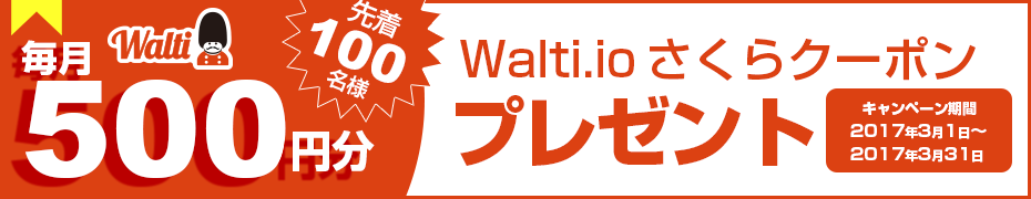 クーポンを入手できなかった場合は、下記クーポンの登録手順はスキップして下さい。ただ、クーポンを使わなくてもWalti.ioは安価なサービスなのでぜひ気軽にご利用いただければと思います。