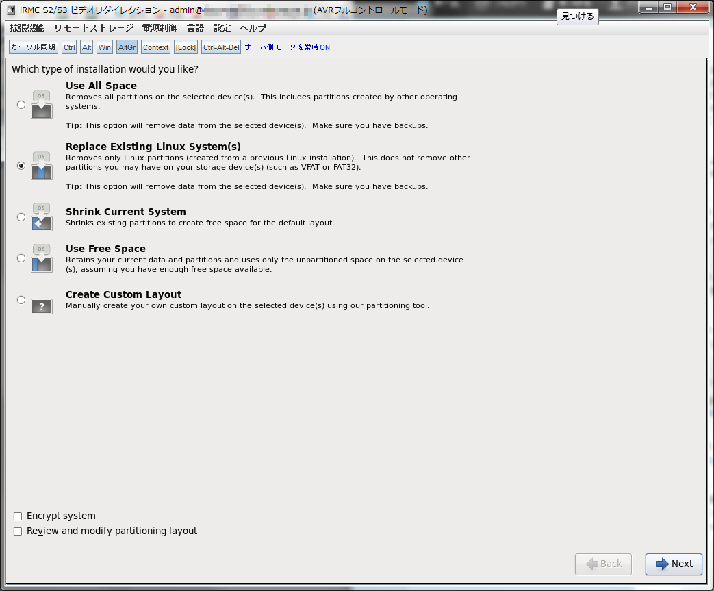 また、CentOS 5/6およびScientific Linux 6については最小構成および標準構成が選択でき、標準構成の場合はApache HTTP ServerやPostgreSQL、MySQL、Webminといったソフトウェアが自動的にインストールされる。さらに、デフォルト設定ではストレージのパーティションが自動で設定されるが、Citrix XenServerおよびVMware vSphere以外のOSの場合はユーザー側で手動でパーティション設定を行うこともできる。