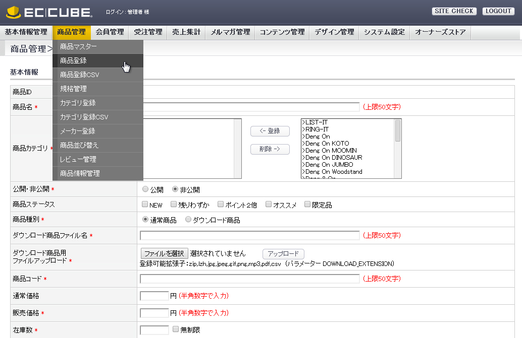 もちろん管理画面の「商品管理」→「商品登録」から、ひとつひとつ丁寧に登録していくことはできます。商品数が少ないうちは、それでも良いでしょう。でも、商品数が膨大だったり、入れ替えが激しかったりするタイプのECサイトをこしらえるなら、CSVでの一括登録機能は欠かせません。時間がいくらあっても足りませんから。
