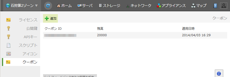 これでさくらのクラウドで発生した課金がクーポンから充当されるようになります。
