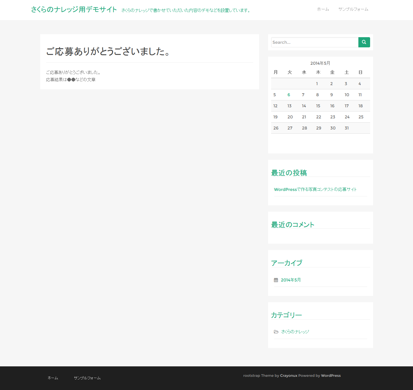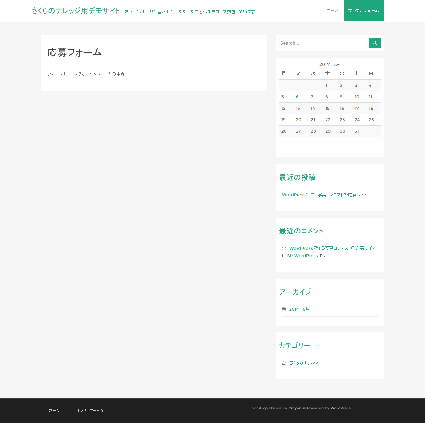 ポイントとしては、wp-load.phpを読み込むことで、設置したWordPressの機能を利用可能にしていることと、そのため、WordPressの部分のデザインと見た目の違和感のないフォームの設置が可能になっていることです。