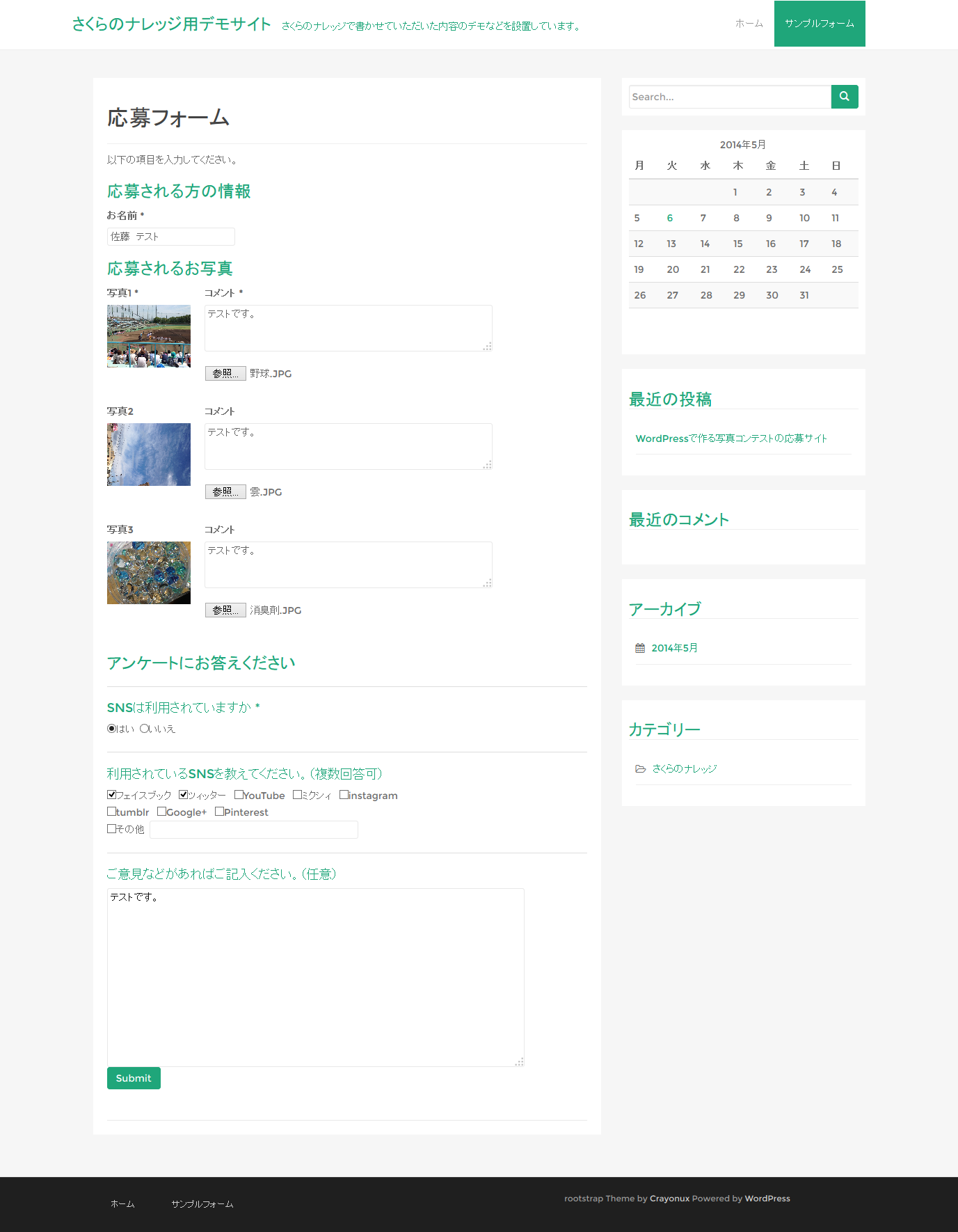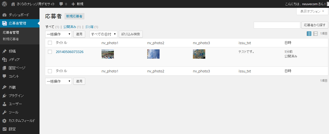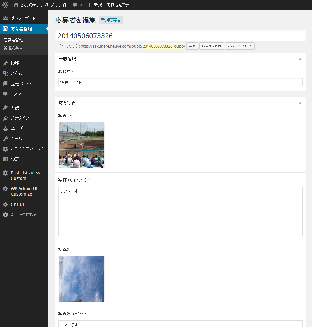 しかし、見やすくはなりましたが、写真の大きさ等、実際に使う側に立って考えると、これでも少々不便さは残ります。そこで、WordPressのものではなく、応募を閲覧管理する画面を別に作成することで、その不便さを解消することにしたのですが、その方法に関しては次回「Part.3 動作環境編」でご紹介します。