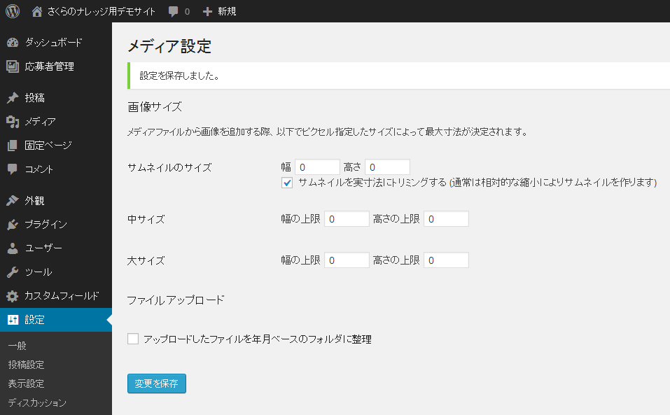 そのような場合には、「管理画面」 > 「設定」 > 「メディア」の設定を、下図のように設定しおきます。