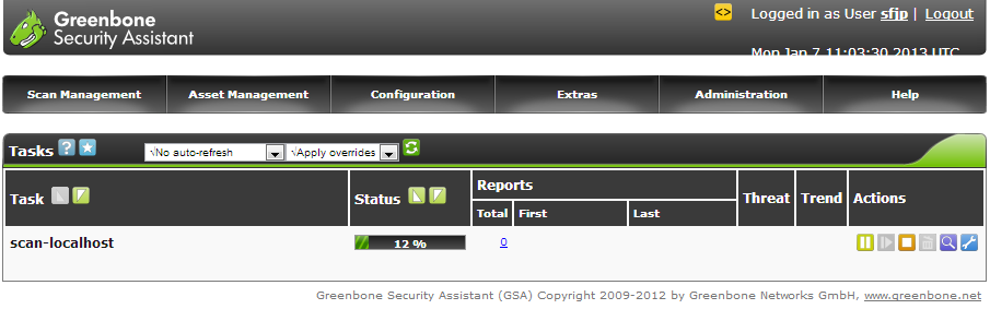 初期状態ではタスクは登録されていないので、まずローカルホストをスキャンするタスクを登録してみよう。タスクを登録するには、「Scan Management」メニューの「New Task」を選択する(図3)。