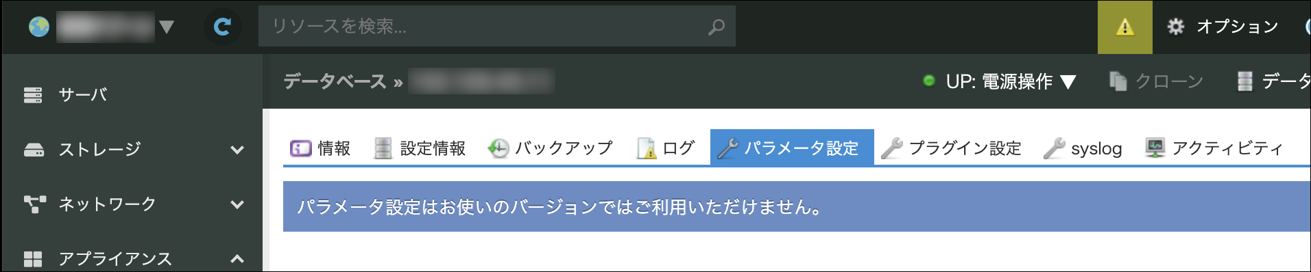 - アプライアンス内のデータベースエンジンは再起動時に時刻同期を行います。データベース上の時刻情報にずれが生じる場合はアプライアンスを一旦停止の上、再度起動の操作をお試しください。