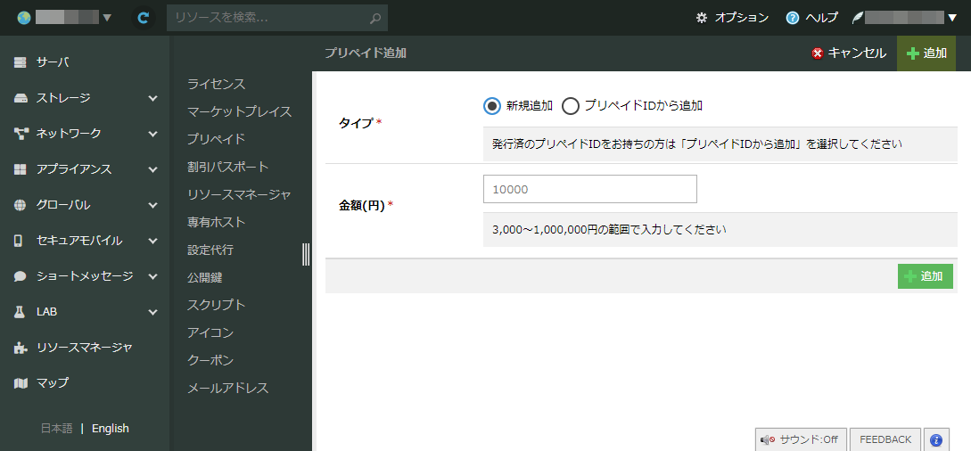 • プリペイドIDを登録しているクラウドアカウントを削除した場合にはプリペイドは残高や有効期限に関わらず失効します。復旧を行うことは出来ませんのでご注意ください。