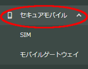 コントロールパネル画面が表示されたら、左側のメニューより「セキュアモバイル」をクリックします。