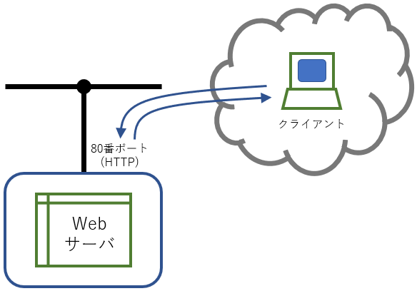 現在の構成として、Webサーバ1台が外部から接続可能なグローバルネットワークに接続され、HTTPによるサービスを行っている環境を想定します。