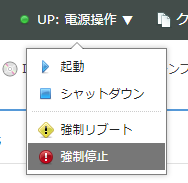 通常はこれらの操作でサーバの停止や再起動を行うことを推奨しますが、OSが高負荷状態にあったり、暴走している、フリーズしているなど異常な状態にあるとこれらの操作で電源が停止しない場合があります。その際は「強制停止」または「強制リブート」を選択します。