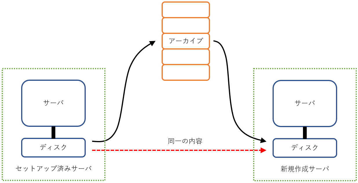- 停止予定のサーバと、サーバ仕様や設定、内部に保存されるコンテンツなど同等に動作するサーバを作成する