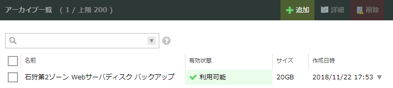 アーカイブ機能は、サーバ作成時のテンプレートとなるディスクイメージやバックアップデータなど、頻繁な内容変更を伴わないデータの保管用として最適な領域を提供する機能です。