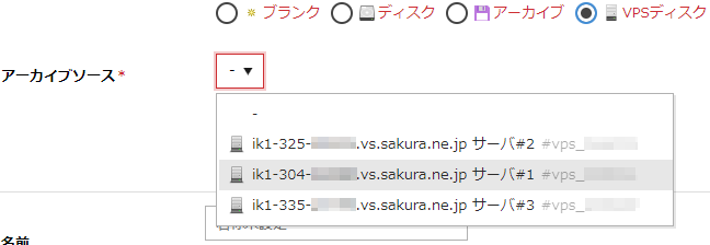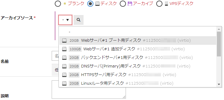 ・同一ゾーン内のディスク ・パブリックアーカイブ ・同一ゾーン内のマイアーカイブ ・他ゾーンにあるマイアーカイブ ・同一会員IDが持つさくらのVPSのディスク |
