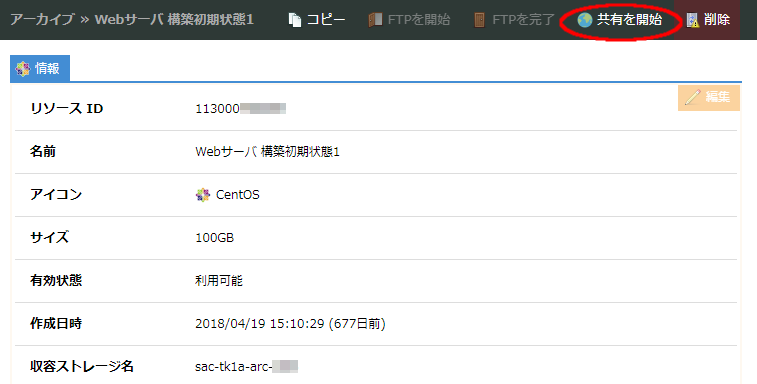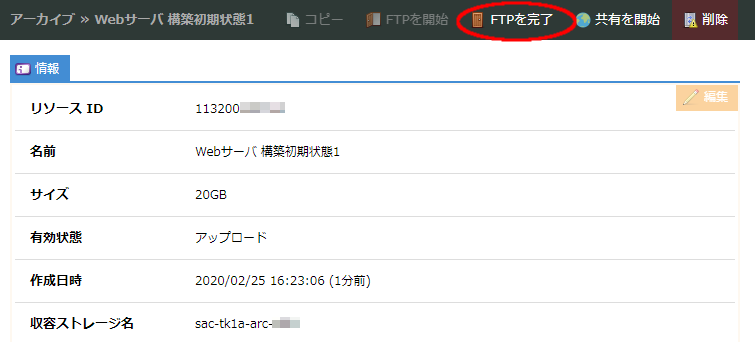 - Windows Serverなど、バンドル情報が付与されたイメージがソースとなるアーカイブの場合、FTP機能はご利用いただけません(バンドル情報の有無については各アーカイブの「情報」タブ画面からご確認いただけます)。