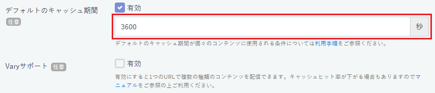 * キャッシュ期間の秒数を変更する場合は、デフォルトのキャッシュ期間を有効後に行ってください。