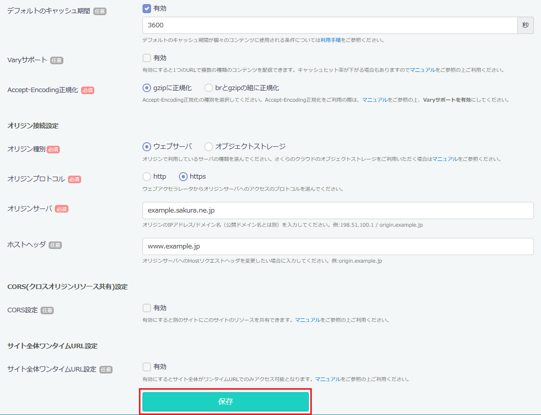 * 変更したキャッシュ期間は、「保存」ボタンをクリックした時点で反映されます。
