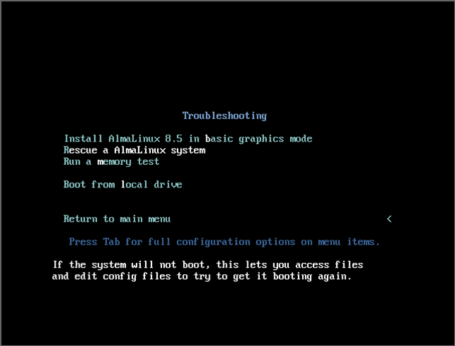RHEL系(CentOS 7/CentOS Stream/AlmaLinux/Rocky Linux)でレスキューブートする¶