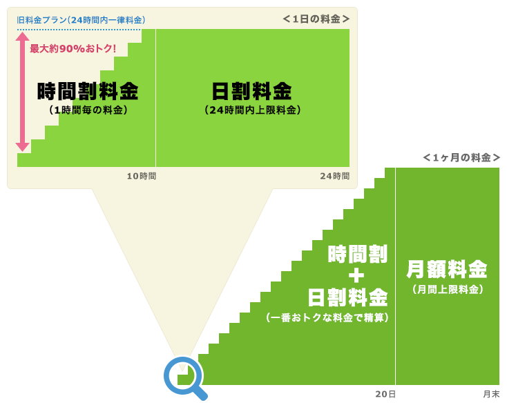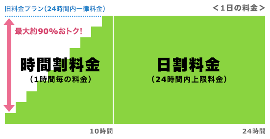 従来は、1時間の利用でも日割料金がかかっていましたが、これからは1時間単位での時間課金となるため、最大で約90%安くなります。また、時間課金の導入後も従来の日割金額が24時間内の上限料金となり、他社クラウドサービスで一般的な完全従量制と比較すると、圧倒的に安くなります。およそ10時間未満の利用の場合に時間割料金が適用され、短時間利用の場合はより安く、長く使ってもこれまでと変わらず安い料金プランを実現しました。