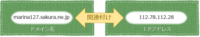 インターネット上のすべてのサーバには、IPアドレスという各サーバを識別するための数字が割り振られています。インターネットを介して機器が通信をするときには、このIPアドレスを使って相手の場所を特定しています。しかし、単なる数字のIPアドレスは人間にとっては覚えにくいので、理解しやすいドメイン名をIPアドレスと関連付けて使っているんです。