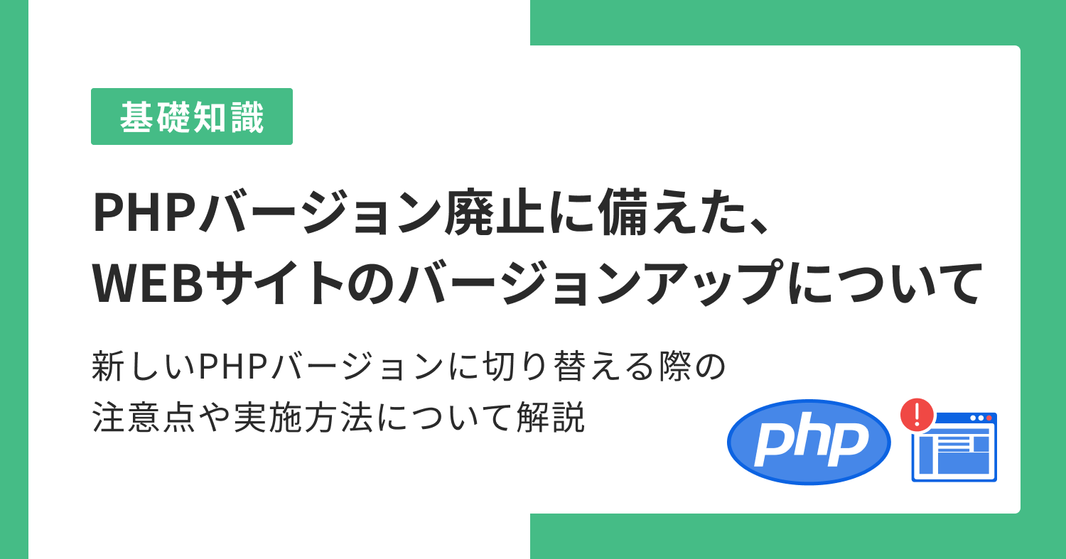この記事では、「PHPバージョン廃止と対応方法」をテーマとして、「PHPってなに?私のWEBサイトにも影響あるの?」といった疑問から、実際のバージョン変更方法まで、新しいPHPバージョンに切り替えて頂く際の注意点や実施方法についてご紹介していきます。