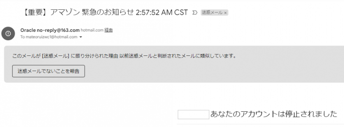 上の画像のように、件名はそれらしいものが入っていますが、送信者はフリーメールになっています。このメールは送信者は確かに表示されているドメインでDMARCまで対応して送信しているので、SPF,DKIM,DMARCすべてPASSになっています。この先は、本文なども含めて判断する迷惑メールフィルタの出番になりますし、そこも通過されると最後は自分の目で見て判断する必要が出てきます。メール内のリンクは極力クリックしない癖をつけておく方がよいと言われるのはそういった事情もあるからなのです。