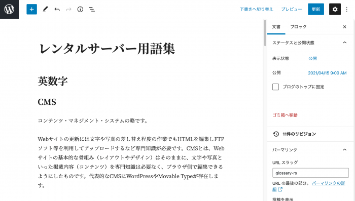 詳しくは後に書きますが、サイトデザインを変える「テーマ」や新たな機能を追加できる「プラグイン」も沢山開発されているので、一般的なWebサイトであれば目的に合うテーマやプラグインは大抵見つかります。