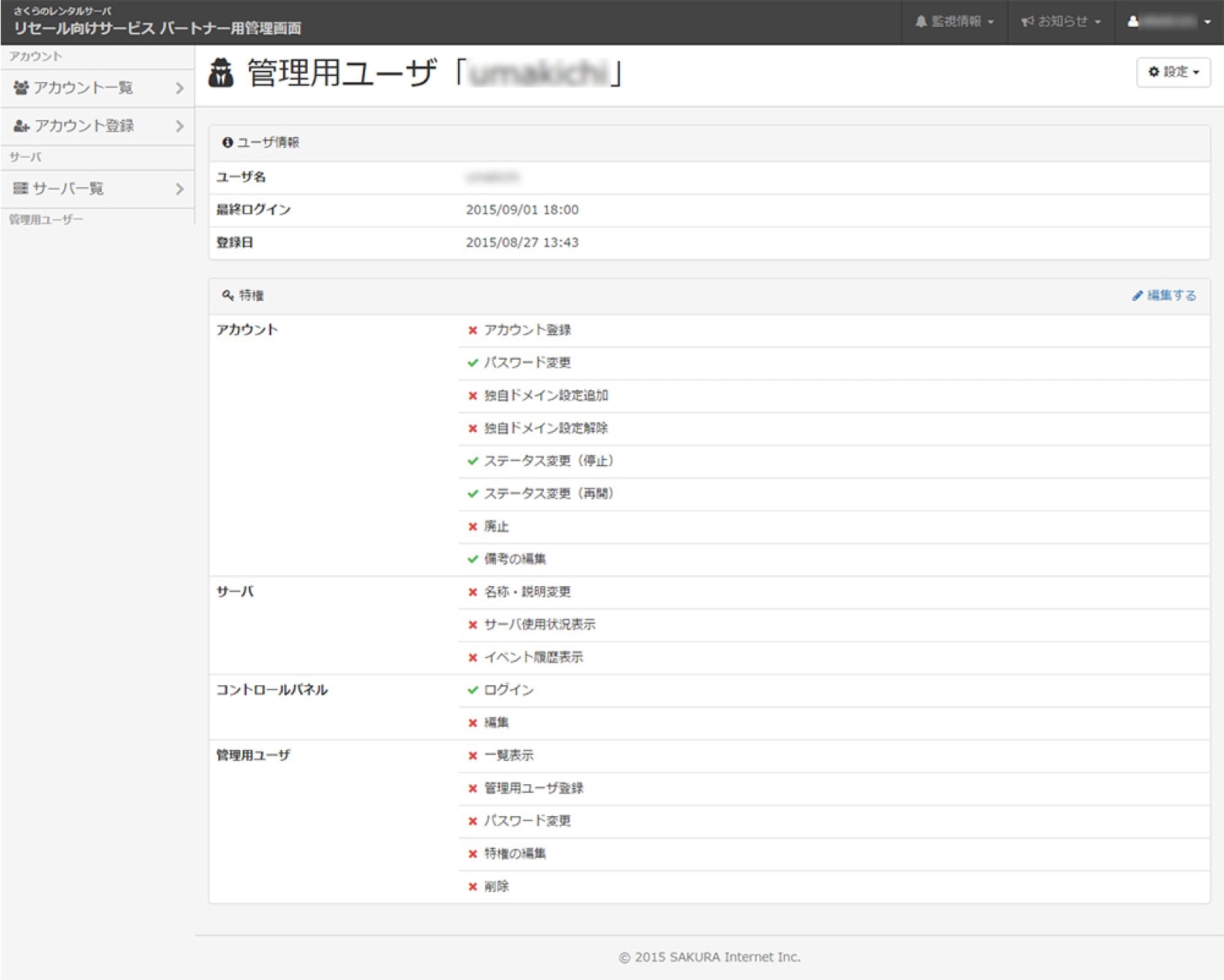 管理用ユーザ 管理用ユーザーを新たに発行し