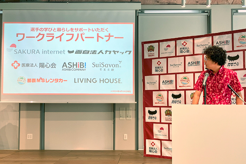 2024年4月18日、さくらインターネットのDX拠点「SAKURA innobase Okinawa」にて、沖縄県の女子サッカーチーム「FC琉球さくら」の新体制発表記者会見が琉球フットボールクラブ株式会社主催のもと開催されました。さくらインターネットがオフィシャルトップパートナーに就任したことが発表されたほか、チーム設立の背景、独自の制度や取り組みなどが説明されました。本記事では、その記者会見をレポートします。