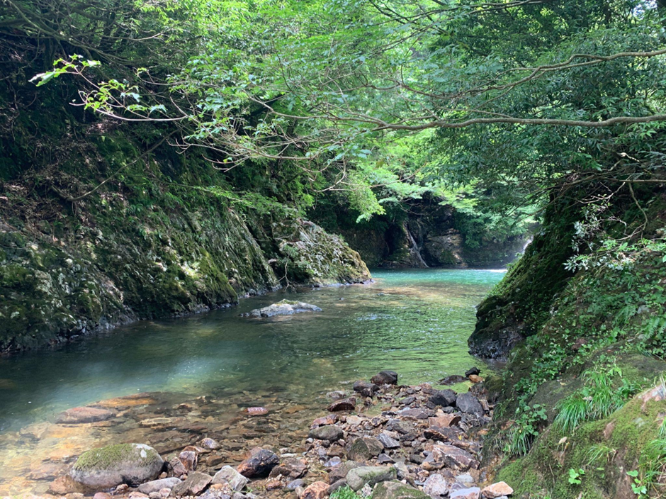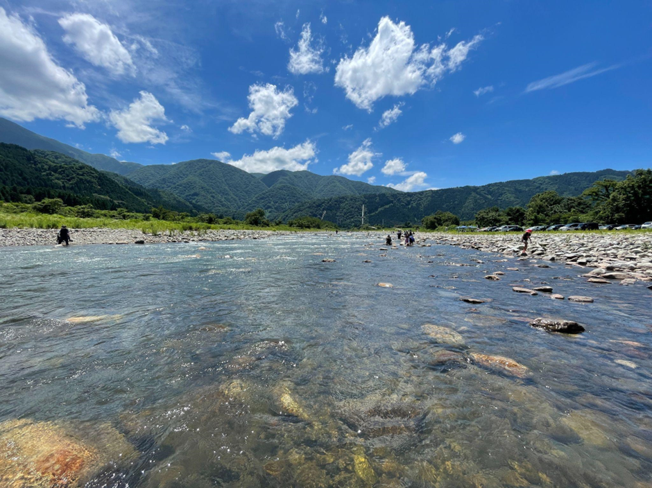 アユ釣りができる川の様子。腰まで水に浸かって糸を垂らすことも。
